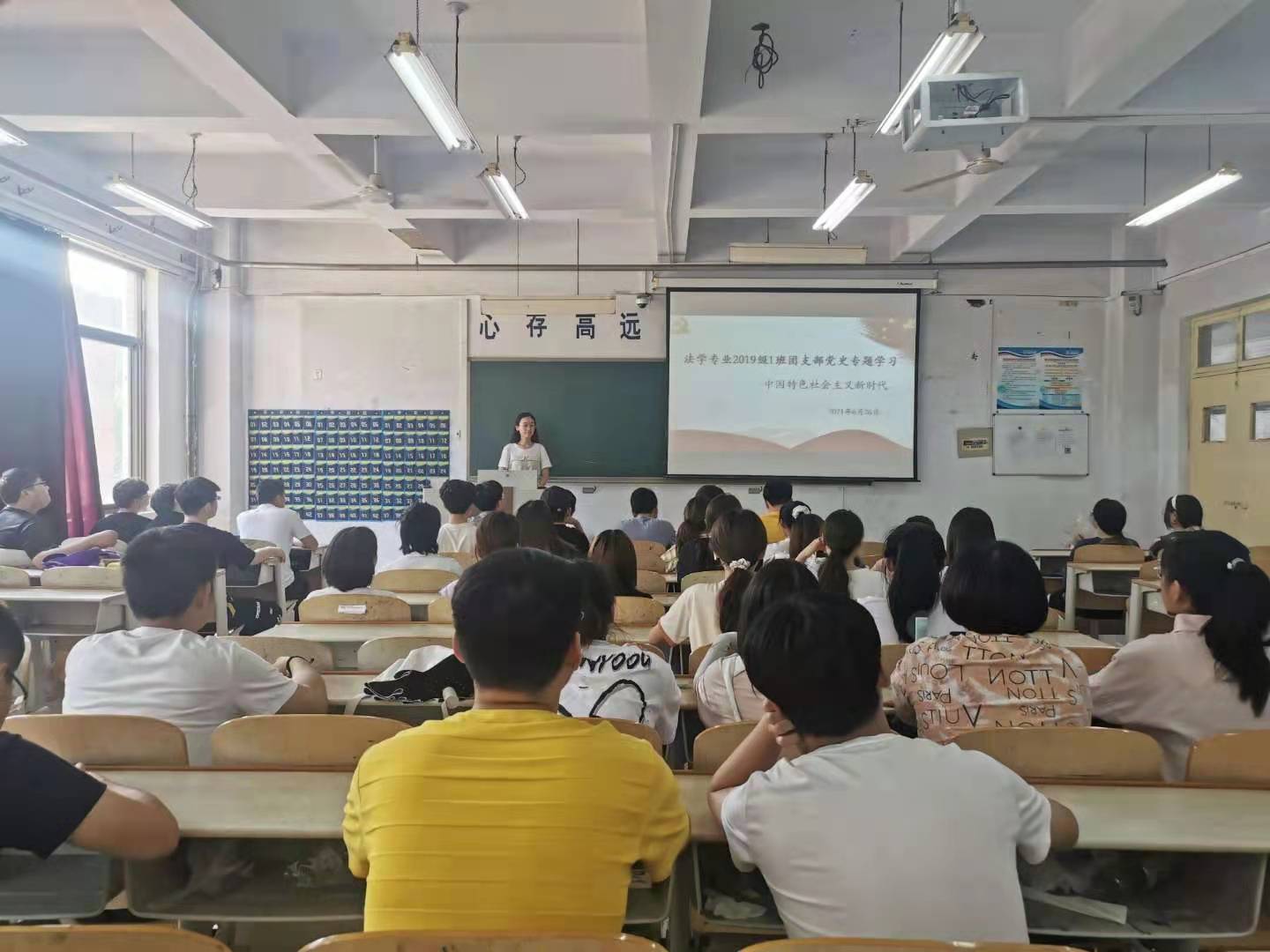 通过这次党史专题学习会,同学们充分了解了新时代的内涵,明白了应在习近平新时代中国特色社会主义思想指引下,在以习近平同志为核心的党中央坚强领导下,勇于承担历史使命,增强自身实力,用知识与智慧共同建设美丽中国!