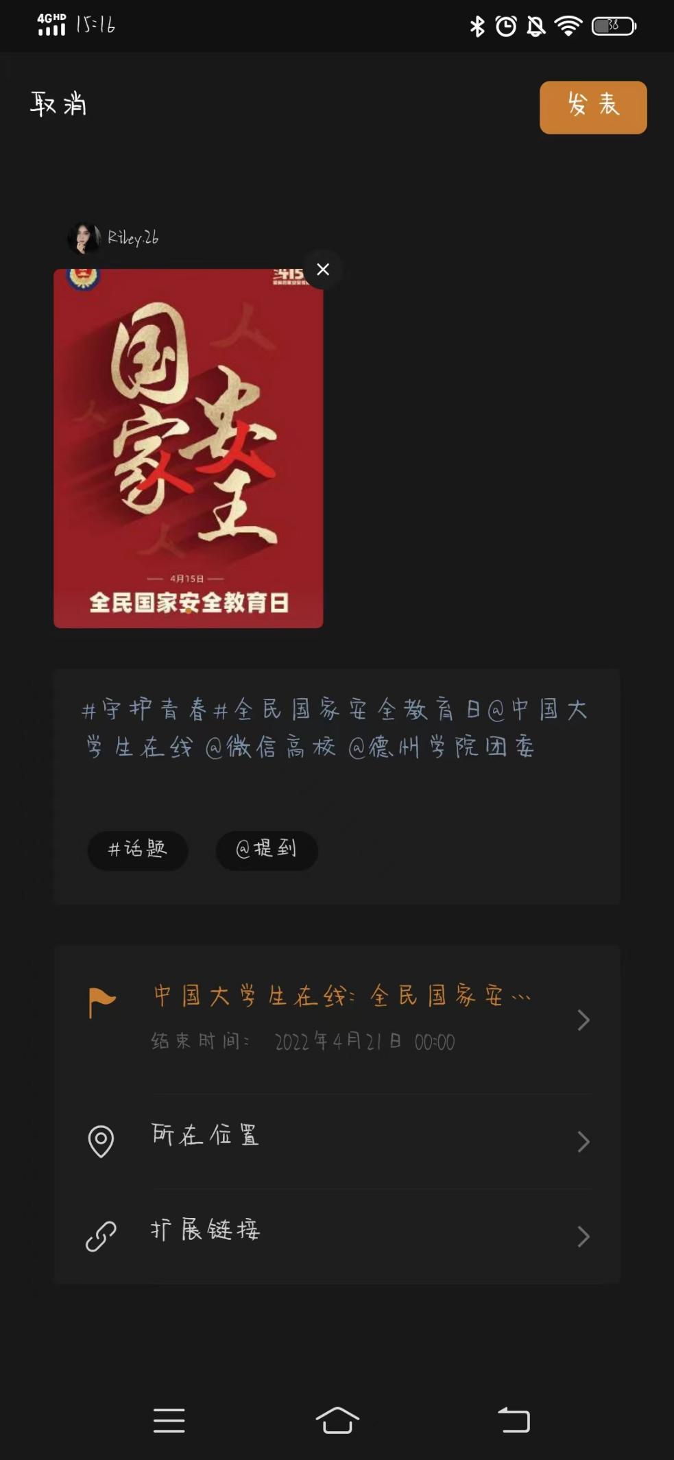 bv1946伟德师生参与了本次活动,进行了原创主题短视频的发布。本次活动的顺利开展,普及了国家安全知识,广泛而深入地为学生开展了国家安全教育,让学生牢固树立了国家安全意识,增强了自觉维护国家安全的责任感,提升了维护国家安全的能力。使维护国家安全人人有责,人人可为的思想进一步深入人心,营造了良好的校园氛围。
