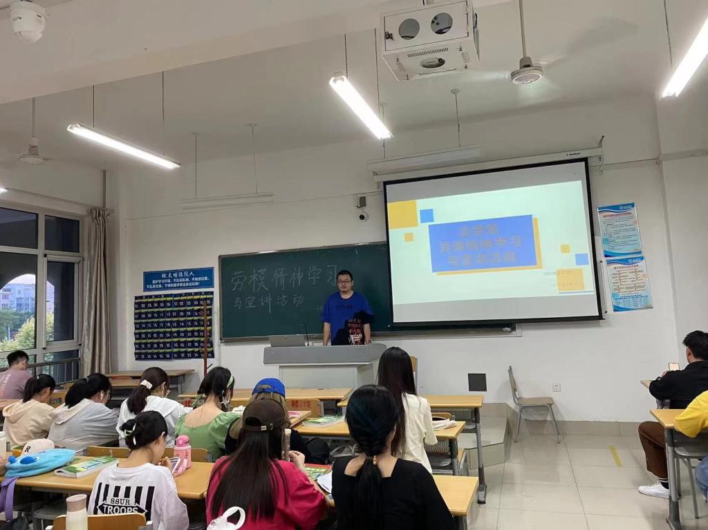 活动伊始,由各班主讲人向同学们讲解劳模精神的具体内涵和讲述劳动模范代表的典型先进个人事例,并鼓励同学们向劳动模范学习,谨记劳模精神,热爱劳动,积极参加劳动。