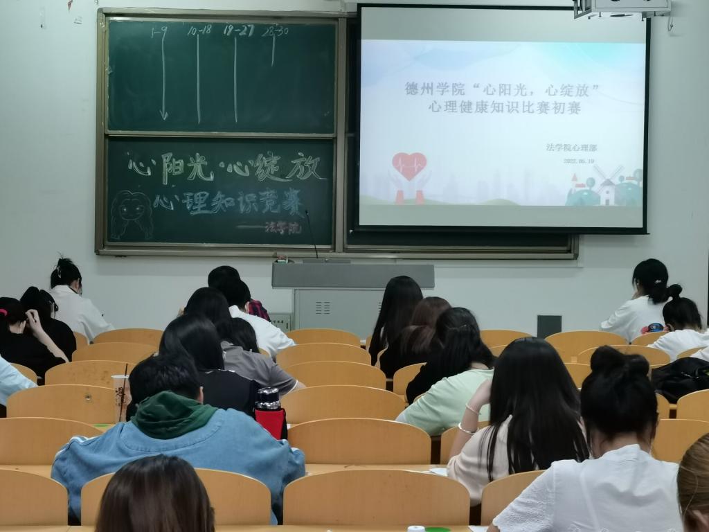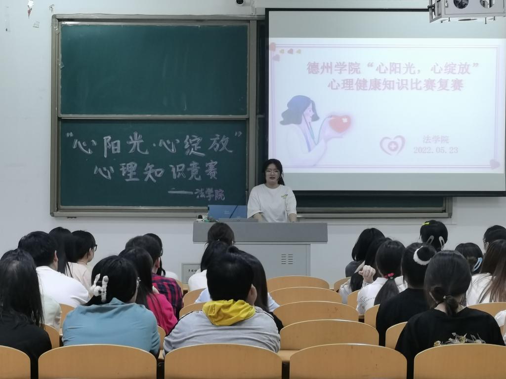 为了营造良好的心理健康教育氛围,推进学校心理健康教育工作的实施,提高大学生心理健康素质水平,丰富校园文化生活,增强大学生对心理健康的认识与重视。2022年5月19日、23日由我校心理健康教育与咨询中心主办,bv1946伟德承办的以“心阳光,心绽放”为主题的心理健康知识比赛在博文楼427教室成功举办。