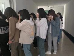 在老师的带领下,同学们弯着腰用湿毛巾捂住口鼻有序撤出宿舍,按照安全出口的指示快速前进,撤离到宿舍楼下的安全地点,撤离过程井然有序。并有专业人士现场给同学们讲解、示范了干粉灭火器的正确使用方法,利用“一提二拔三瞄四按”的顺口溜帮助同学们更好地记住干粉灭火器的使用步骤。