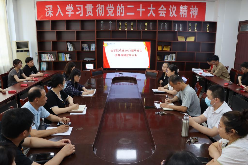 座谈会上,气氛温馨而充满感动,毕业生代表依次敞开心扉,交流收获,畅想未来,深情回顾大学期间在校学习生活、社会实践及参加校院文化活动的宝贵经历,分享了和老师同学及学弟学妹相处中的温暖瞬间和难忘记忆,表达了对母校、恩师的感恩眷念、对同窗好友的祝福不舍及未来向往之情。大家纷纷表示,学校和学院发展迅速,为广大学子成长成才提供了良好的学习、生活、发展平台,在新的征程上,将始终坚持“崇德启智 励志博学”的德院精神,厚德明法,正义恒立,为社会主义法治国家建设贡献青春力量。