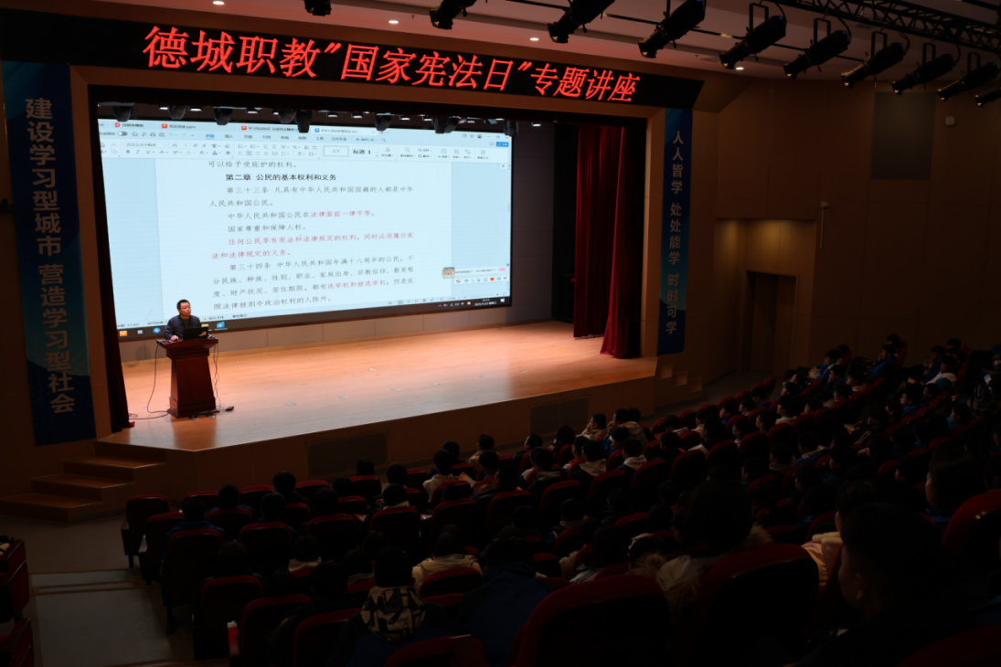 在第十二个国家宪法日来临之际,12月3日,bv1946伟德院长杨振生应邀到德城区作“学习宪法知识、弘扬宪法精神”专题宣讲报告。