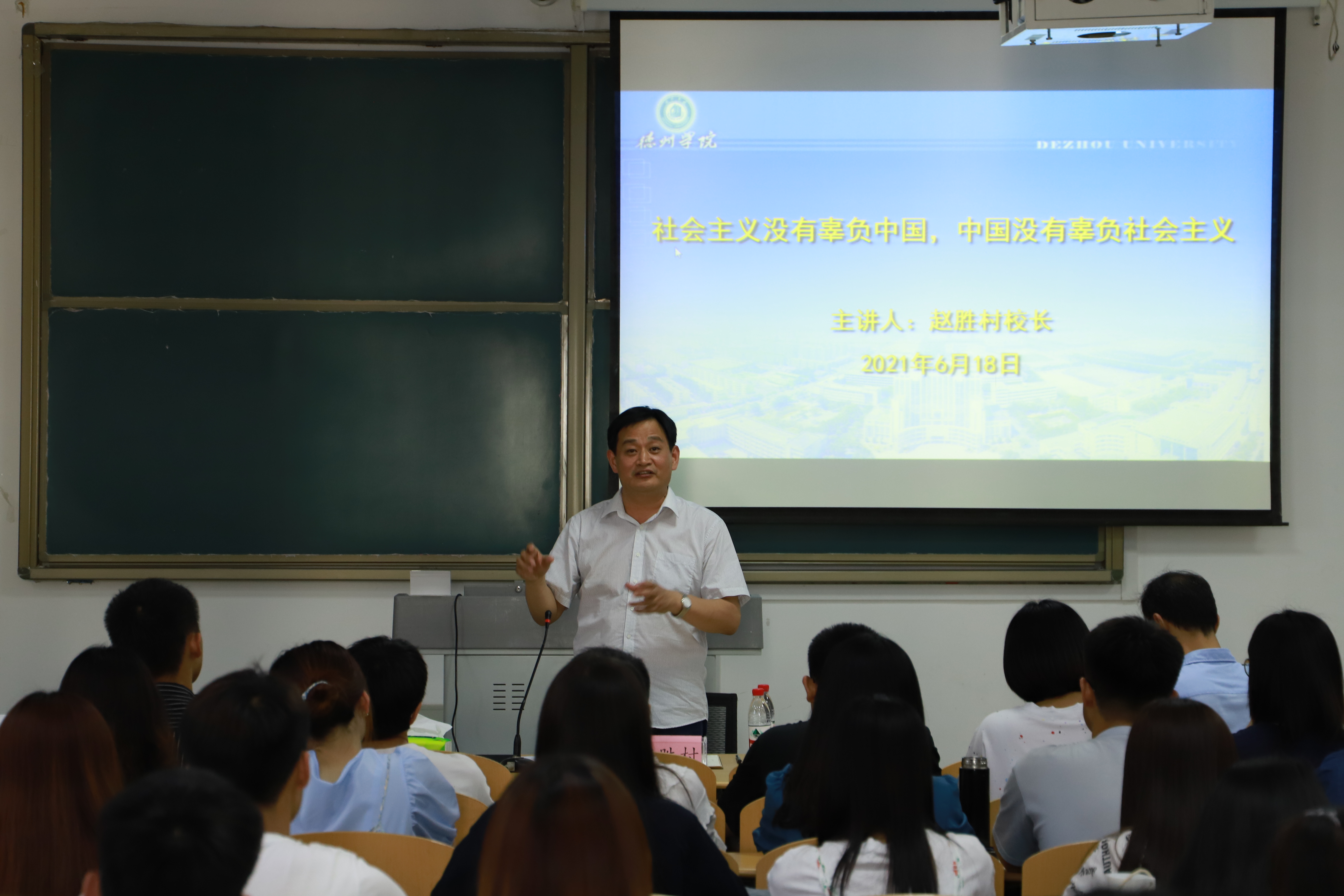 2021年6月18日,赵胜村校长在博文楼427教室为bv1946伟德第一学生党支部全体党员、2019级公共事务管理班学生开展了《社会主义没有辜负中国,中国没有辜负社会主义》专题讲座。马克思主义学院李霞教授、bv1946伟德班子成员以及师生党员110余人聆听了讲座。