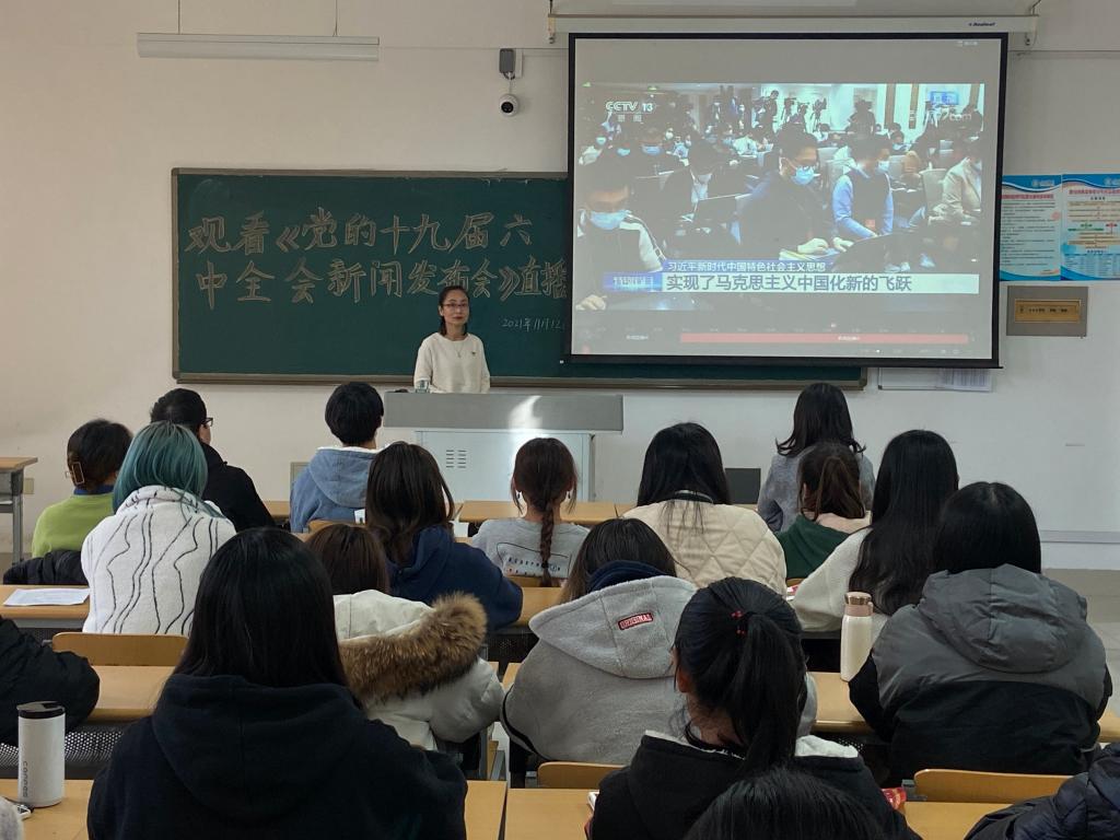 11月12日上午,bv1946伟德党委组织中心组成员及部分师生集中收看十九届六中全会新闻发布会直播。