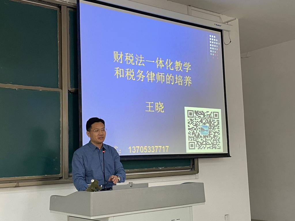 王晓博士与bv1946伟德教师围绕涉外法治人才培养、行政管理专业改革创新、打造国际化办学格局等主题进行了工作交流。28日下午,王晓博士为2021级法学专升本班同学作了“财税法一体化教学和税务律师的培养”讲座,结合我国当下社会发展阶段,展望了税务律师行业的现状和发展前景,阐述了开展财税法一体化教学的改革思路,鼓励同学们加强职业规划,努力学习,成为“法律+英语”“法律+会计”等社会急需的复合型人才。