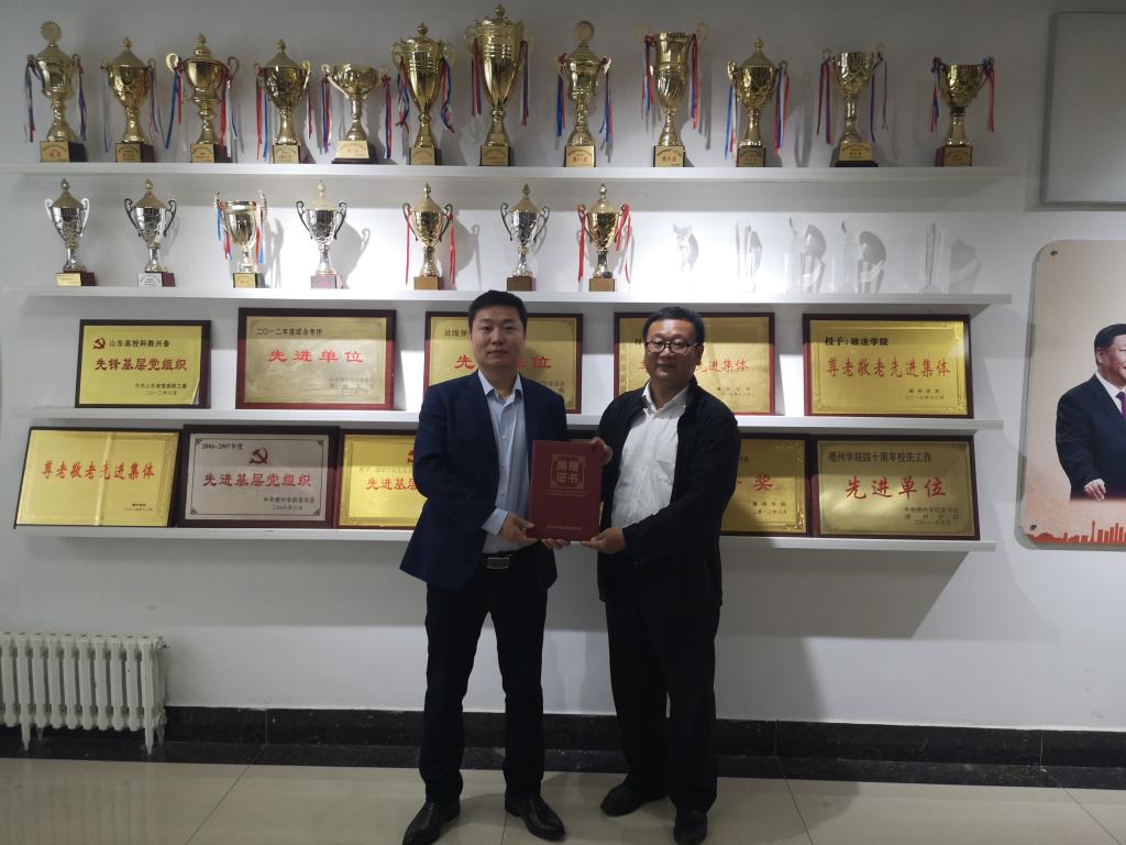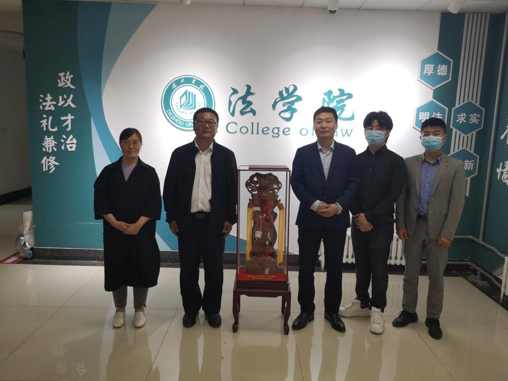 2022年5月11日,伟德源自英国始于1946建校51周年之际,浙江靖霖(济南)律师事务所副主任朱明志一行2人来访bv1946伟德,进行工作交流,并捐赠木如意一件,祝贺伟德源自英国始于194651周年华诞,祈愿bv1946伟德事业发展如意顺遂。