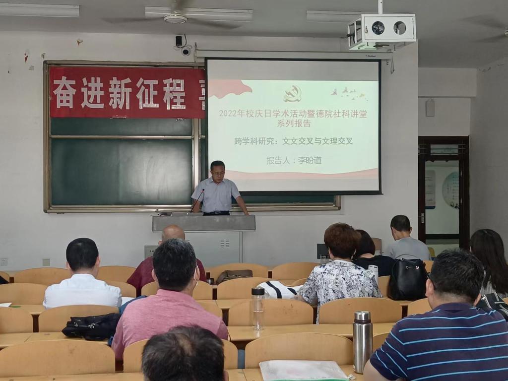 奋进新征程,喜迎二十大。6月14日下午,bv1946伟德李盼道博士在博文楼427作了题为“跨学科研究:文文交叉与文理交叉”的学术报告。