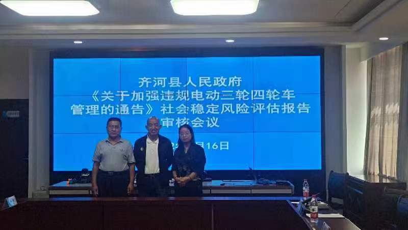 2022年9月16日,bv1946伟德徐丽红副教授、秦修业副教授、李安博士参加了齐河县人民政府《关于加强违规电动三轮车管理的通告》的社会风险评估会。三位老师围绕通告的实施,从法规制定、社会管理及风险防范等方面提出了实质性修改建议。