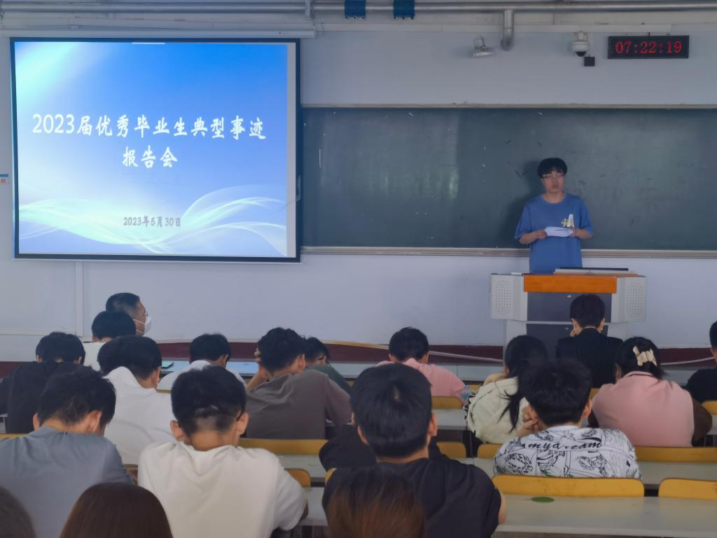 5月30日,bv1946伟德举办了“2023届优秀毕业生典型事迹报告会”,2021级、2022级学生和相关老师参加了报告会。