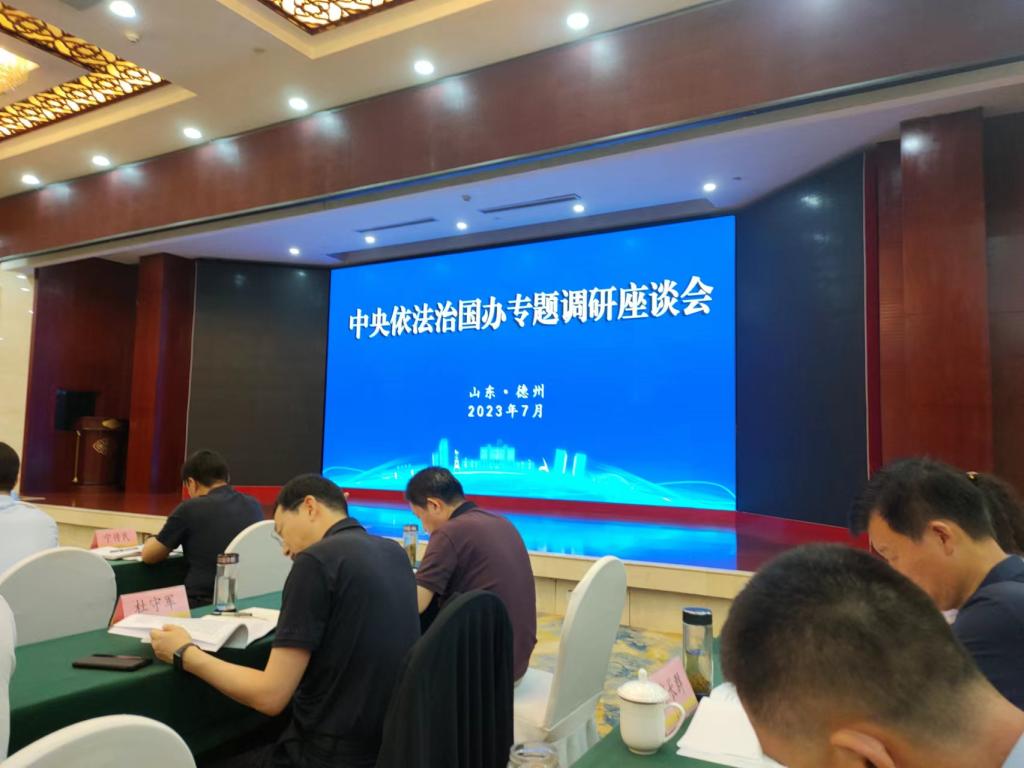 7月21日,中央依法治国办调研组在德州召开专题调研座谈会。调研座谈会就强化依法决策、健全政府法律顾问制度、优化法治化营商环境等方面工作展开调研座谈,并征求意见建议。我院杨振生副院长作为被推荐法学专家应邀参加了调研座谈会。