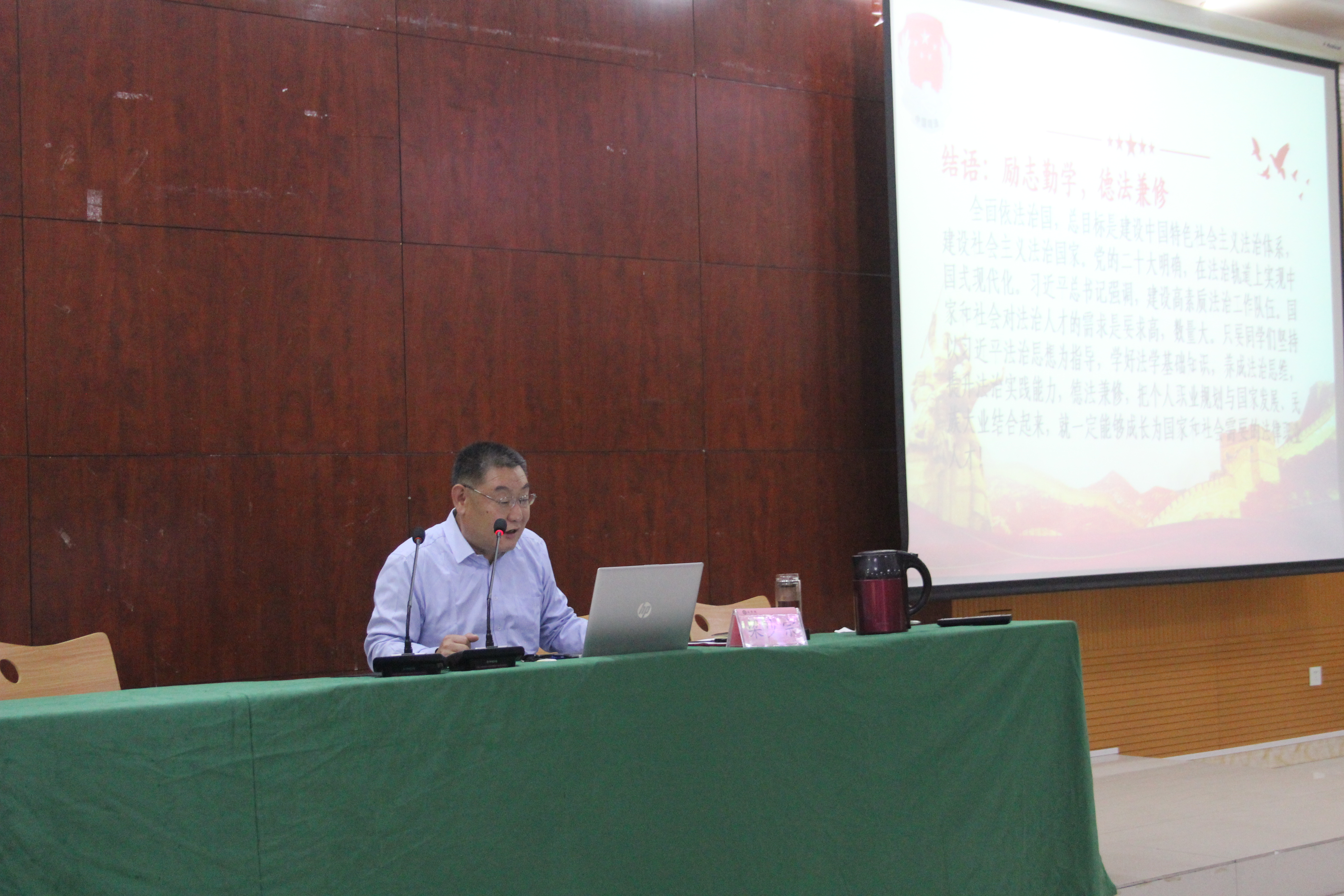 在第一阶段的专题报告环节,梁少宗同志从为什么学习法学、法学有什么特点、法学的学习方法三个方面,结合具体案例和实际工作,与同学们分享了个人成长经历和专业学习感受。他勉励同学们打好专业学习基础,练就真本领,靠扎实的专业能力立足;勉励同学们励志勤学、德法兼修,充分利用宝贵的学校学习机会,充分运用网络学习资源全面提升综合素养,把自己锻炼成会说、善写、能思考、懂协调的新时代社会主义法治人才。