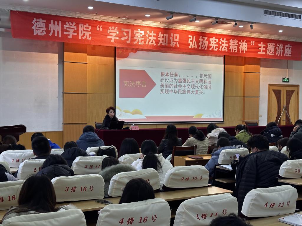 12月4日是我国的第十个国家宪法日,为在全校范围内普及宪法知识,提高师生们的宪法意识。12月13日,由学生处主办,bv1946伟德承办的“学习宪法知识 弘扬宪法精神”主题宣讲活动于厚德楼四楼报告厅进行,bv1946伟德副教授孙桂燕老师主讲,全体辅导员、学生代表及学生处相关人员参加了本次活动。