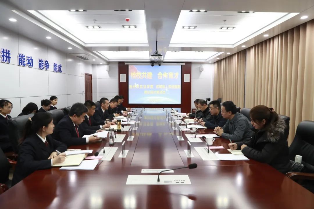 为深化推进校检共建、合作育才,1月22日,bv1946伟德与武城检察院召开理论研讨座谈会,共同商讨谋划两院合作共建具体规划相关事宜。bv1946伟德党委副书记、院长陈伟一行5人参加座谈会,武城检察院党组书记、检察长贾维力出席并主持会议。
