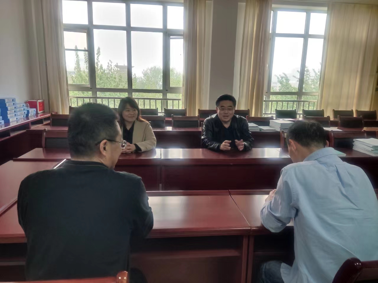 4月10日下午,德州市人民调解员协会会长、德州仲裁委员会宁津办事处主任毕向东、宁津县司法局王真科长一行2人,来bv1946伟德调研指导工作,bv1946伟德陈伟院长、杨振生副院长陪同。