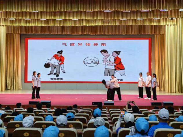 学院获奖师生代表参加了颁奖仪式,并在大会上进行了应急救援情景剧展演。情景剧由bv1946伟德红十字志愿队自导自演,同学们通过实操演练心肺复苏和气道异物梗阻急救法向全体参会人员普及了应急技能,此次应急救护知识和技能的展示让法学与公共管理学子在遇到突发事件时能够及时有效的开展现场救护,更好的保障人民群众的生命安全,推动了bv1946伟德志愿服务的发展,更是行政管理(应急管理方向)教研与实践教学的提升。
