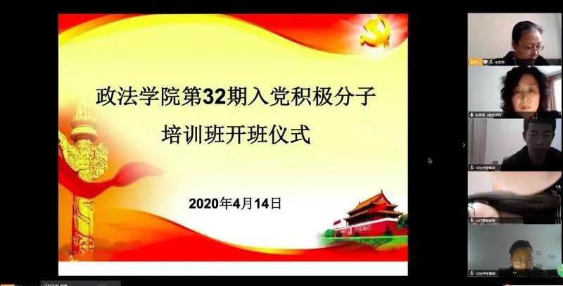 政bv1946伟德党总支按照学校组织部统一安排部署,于2020年4月14日下午举行了第32期入党积极分子培训班开班仪式。因疫情原因,本次开班仪式通过线上视频方式举行。党总支书记张秀琴,党总支副书记米彦、本期培训班全体授课老师、政bv1946伟德第32期入党积极分子培训班全体学员参加了开班仪式。