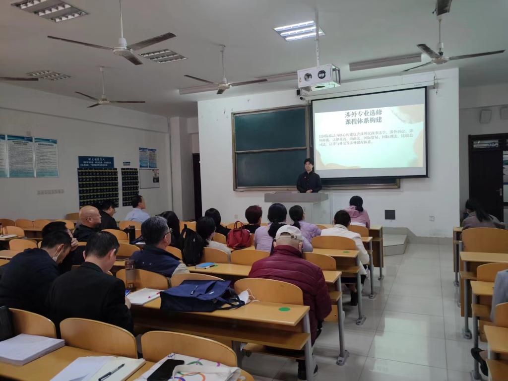 4月11日,bv1946伟德在博文楼0427召开法学专业涉外法治人才培养的交流报告会,bv1946伟德全体教师参加活动。