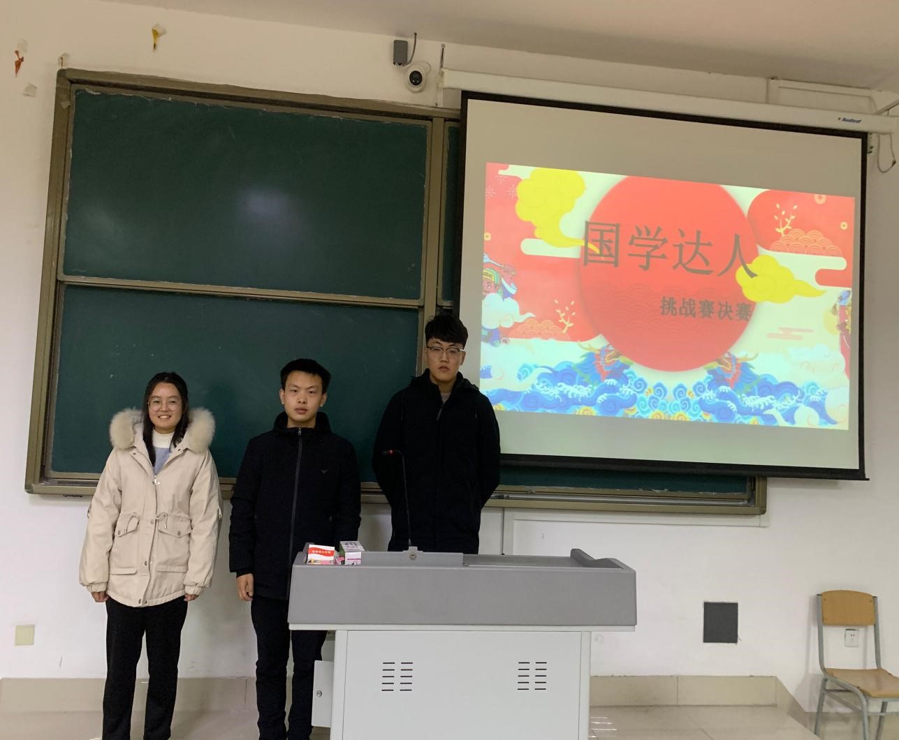 本次比赛分为初赛和决赛两部分,初赛为“无所不能”笔试关,选取了以学院为单位的三人成绩的总分排名前10的优秀队伍进入决赛环节。决赛分为“齐头并进”成语释义环节、“对答如流”诗词知识大比拼环节以及“争分夺秒”国学知识抢答环节。每环节完成后由主持人现场公布成绩及名次,最终评选出团队奖以及个人奖的国学状元、国学榜眼、国学探花。活动结束后拍照留念为本次活动画上了圆满的句号。