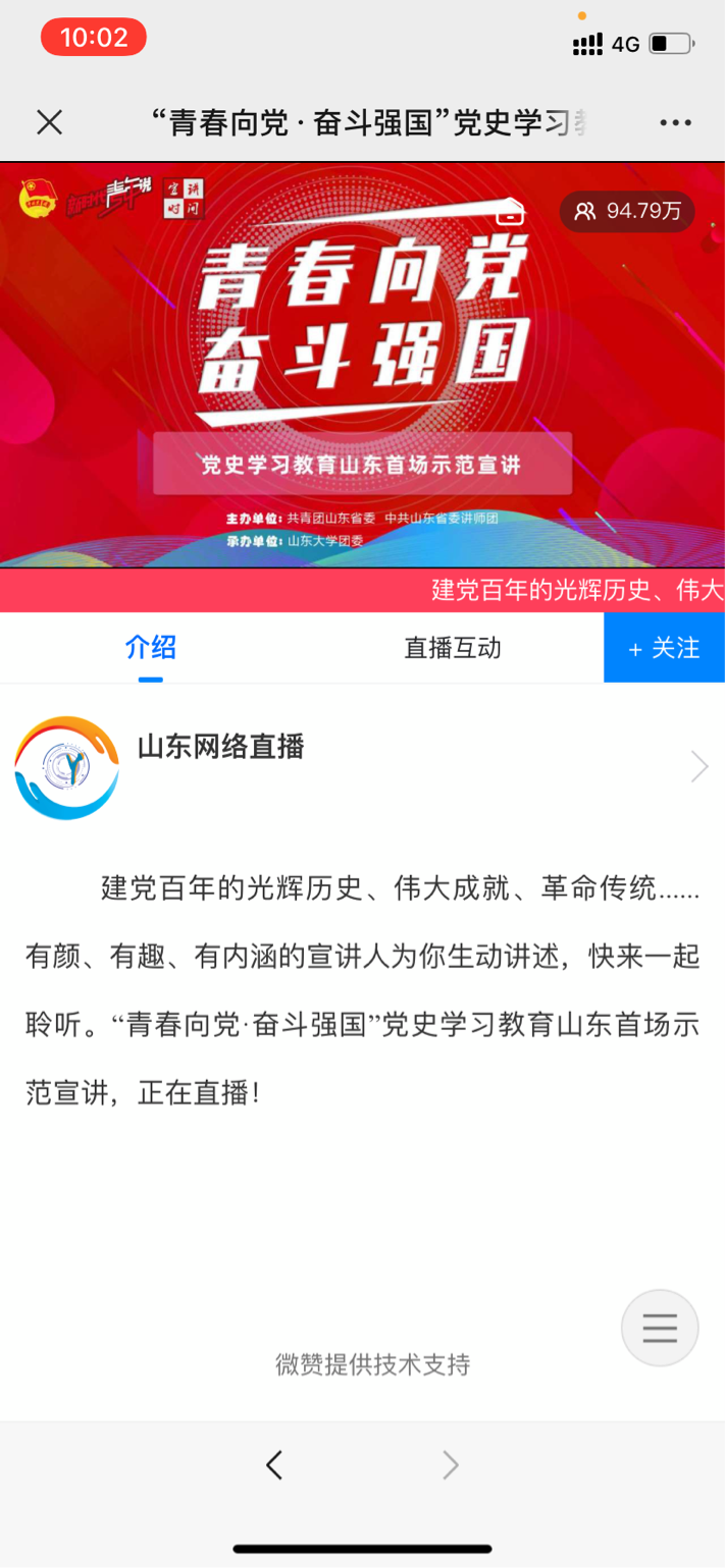 2021年4月16上午9:30-11:30,于山东网络直播平台,bv1946伟德有序组织学生收看了山东省首场“青春向党,奋斗强国”示范宣讲直播活动。此次活动旨在让同学们更加认识党,了解党,坚持学史明理、学史增信、学史崇德、学史力行,深刻领会习近平总书记的重要讲话的丰富内涵,扎实党史学习教育。