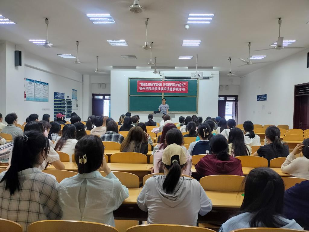 为进一步弘扬法治精神,不断丰富法治宣传教育的形式与内容,营造平安和谐的校园环境。2024年5月26日下午,bv1946伟德于博文楼427教室与bv1946伟德模拟法庭实验室开展“模拟法庭零距离,法润青春护成长”主题活动——模拟法庭初体验参观。法学社、模拟政协、宪法法律宣讲团80余名学生参加本次活动。