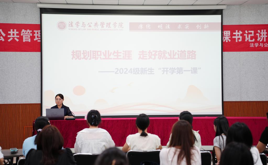金风送爽、硕果满枝,9月2日,法学与公共管理学院2024级新生开学典礼暨入学第一课书记讲就业在博文楼528教室举行。学院领导班子、全体教师及158名2024级本科生参加会议。会议由学院党委副书记马良主持。