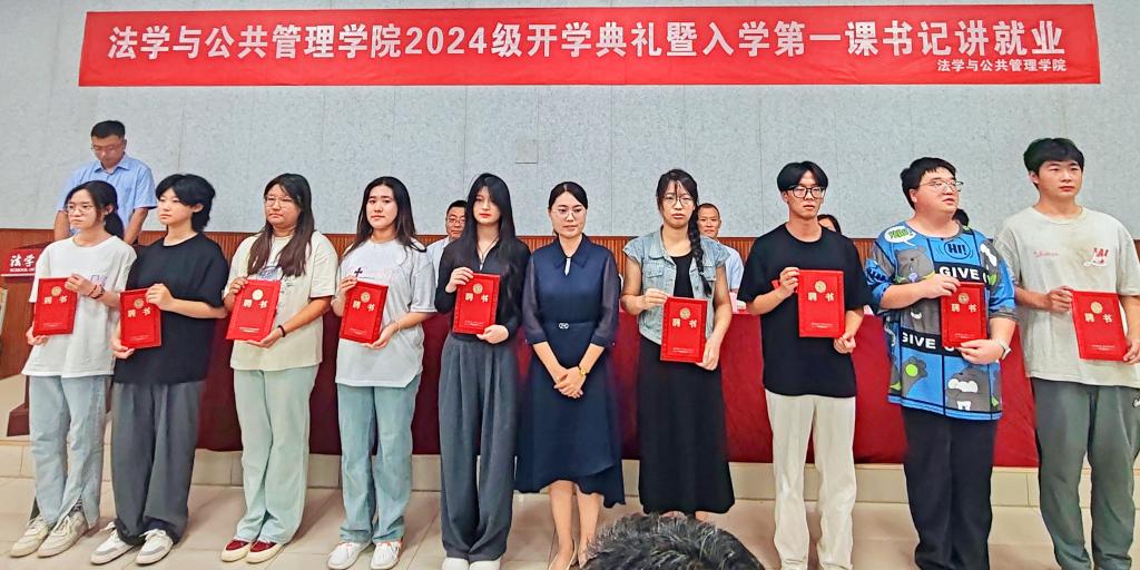 为帮助我院2024级学生快速适应、更好融入大学学习和生活,协助老师高效完成学生管理工作和班级初期建设工作,来自2023级法学、行政管理专业的10名同学,被学院聘请为2024级新生朋辈班级助理,学院党委书记武珊珊为其颁发聘书。