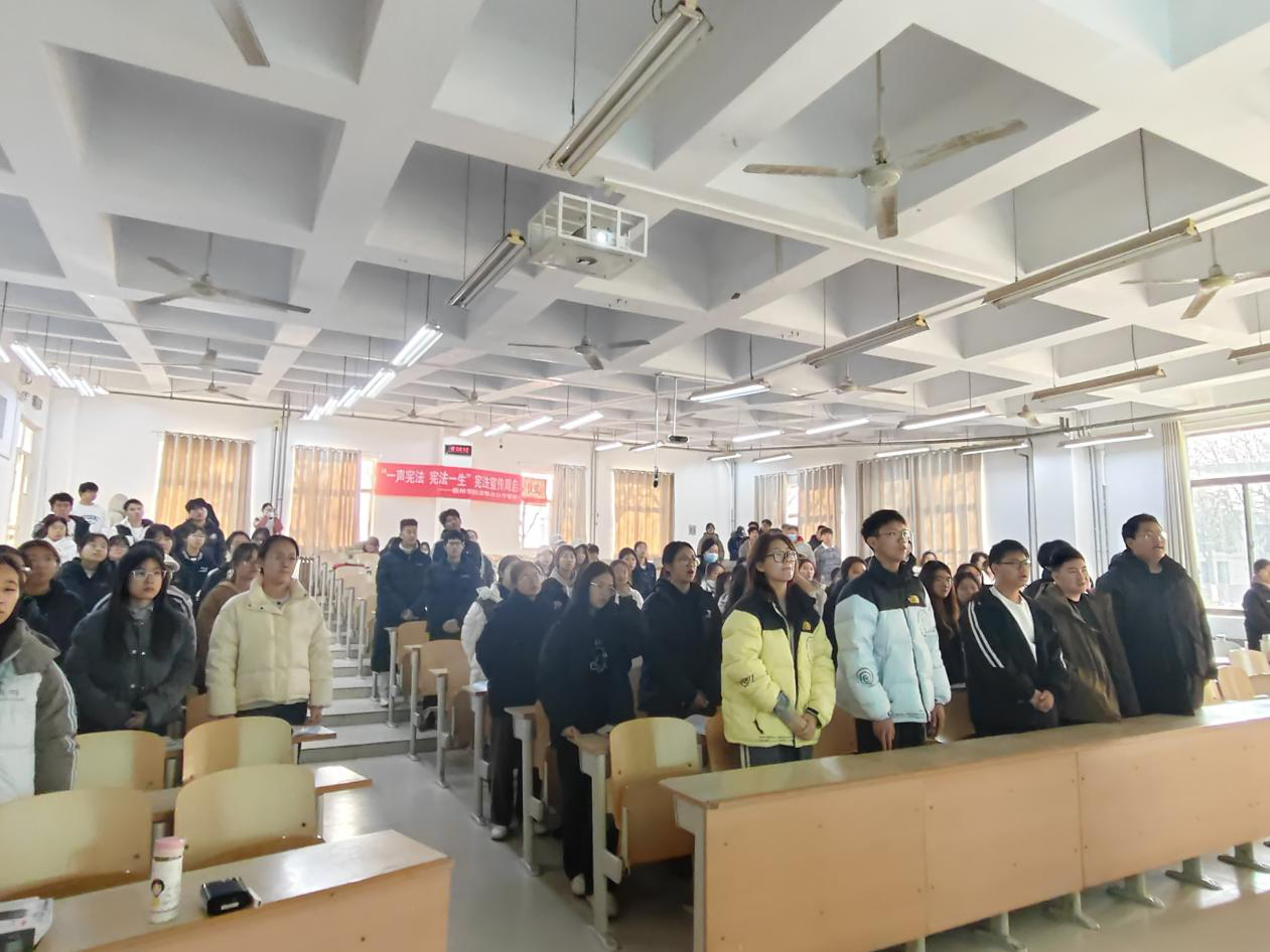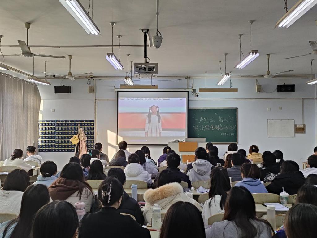 活动伊始,由优秀学生代表领读《中华人民共和国宪法》序言及正文中的部分章节、条款,全体参与者齐声朗读,声音铿锵有力,深切的体会宪法的庄严与神圣。随后,大家观看了全国青少年普法网的宪法直播,宪法学专家对宪法条文进一步深度解读,层层讲解,逻辑严谨,将宪法的精神与力量传递给了每一位观看的学子。活动最后,同学们就“宪法与大学生的关系”这一主题展开了热烈的讨论,分享自己对宪法的理解和认识。