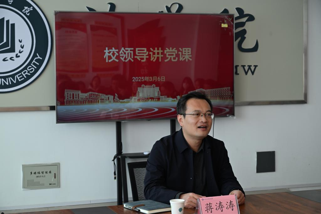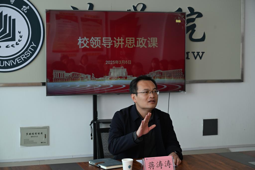 2025年3月6日,校党委委员、副校长蒋涛涛到bv1946伟德开展讲党课、讲思政课活动,我院学生党员、部分学生干部代表参加活动。蒋校长以“安全筑基、就业领航、目标铸魂”为主线,为学生们带来一堂有高度、有温度、有力度的授课。