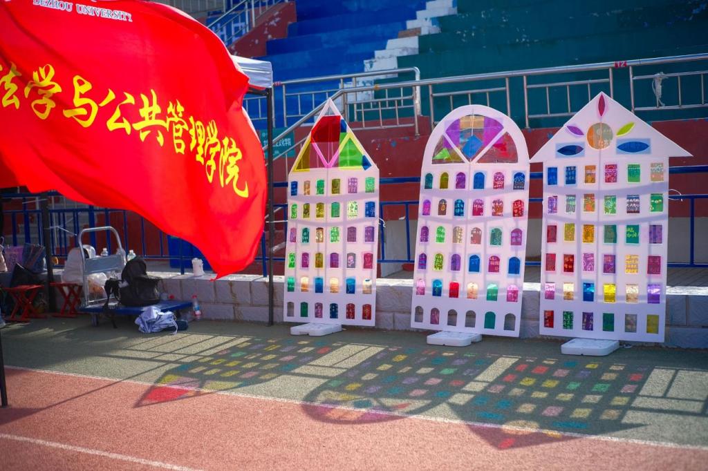 本次活动共设有两大特色环节。在“星愿漂流·心海回音”纸条传递活动中,同学们匿名写下愿望或祝福放入彩球,接着同学们将彩球投入活动现场设置的有关“学业”“感情”“前程”等不同主题的“祝福桶”中,各色的彩球在同学们手中划出一道道抛物线,承载着参与者们对青春与未来的美好愿景。在“璃彩绘梦·光影寄心”创意绘画活动中,同学们用马克笔在彩色玻璃纸上自由绘制情绪涂鸦、心愿场景、书写短诗等,并将其粘贴至镂空展板,共同构建起一面富有创意与情感的“流动艺术墙”。阳光透过五彩玻璃纸投射斑斓光影,吸引大批学生驻足体验。活动现场光影交织,同学们用色彩与文字记录心声,让情感在阳光下绽放。