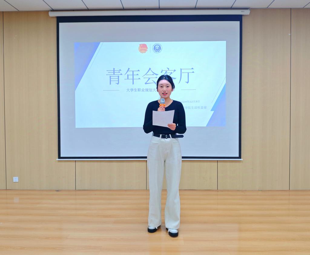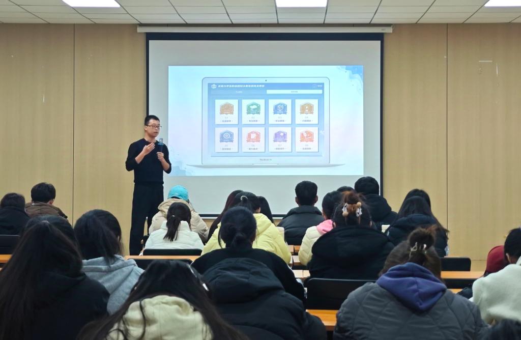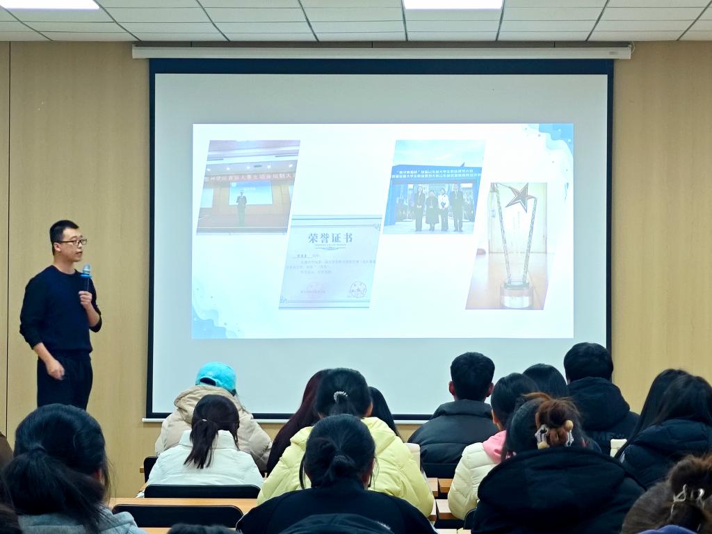 活动邀请首届山东省大学生职业规划大赛铜奖获得者、bv1946伟德殷国鑫为同学们分享参赛流程及经验。殷国鑫围绕大赛流程及评分标准,详细讲解了PPT的制作技巧、生涯发展报告的框架设计及面试中的注意事项,强调现场展演时临场应变和逻辑思维的重要性,要抓住关键核心、找准定位、发掘亮点。