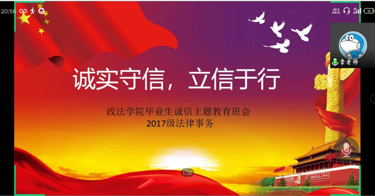 为了培养大学生的诚信意识,在学习和生活中能够自觉诚实守信、立信于行,深刻理解诚信对学生本身发展的意义。6月15日政bv1946伟德通过线上主题班会的形式举办了“诚实守信,立信于行”毕业生诚信教育主题班会活动。