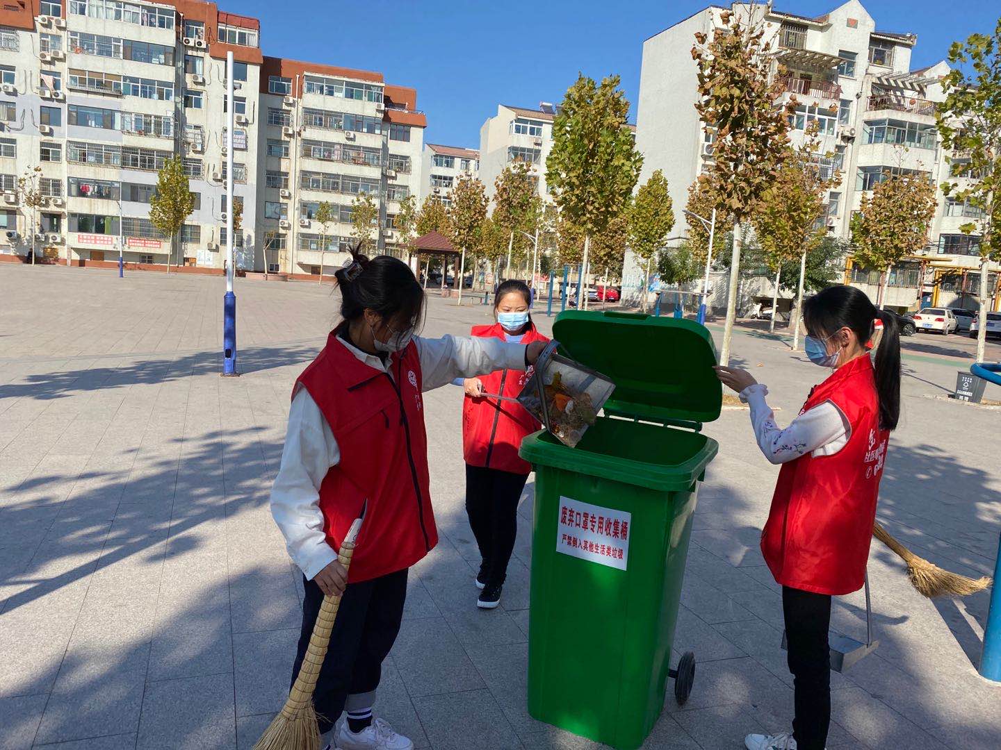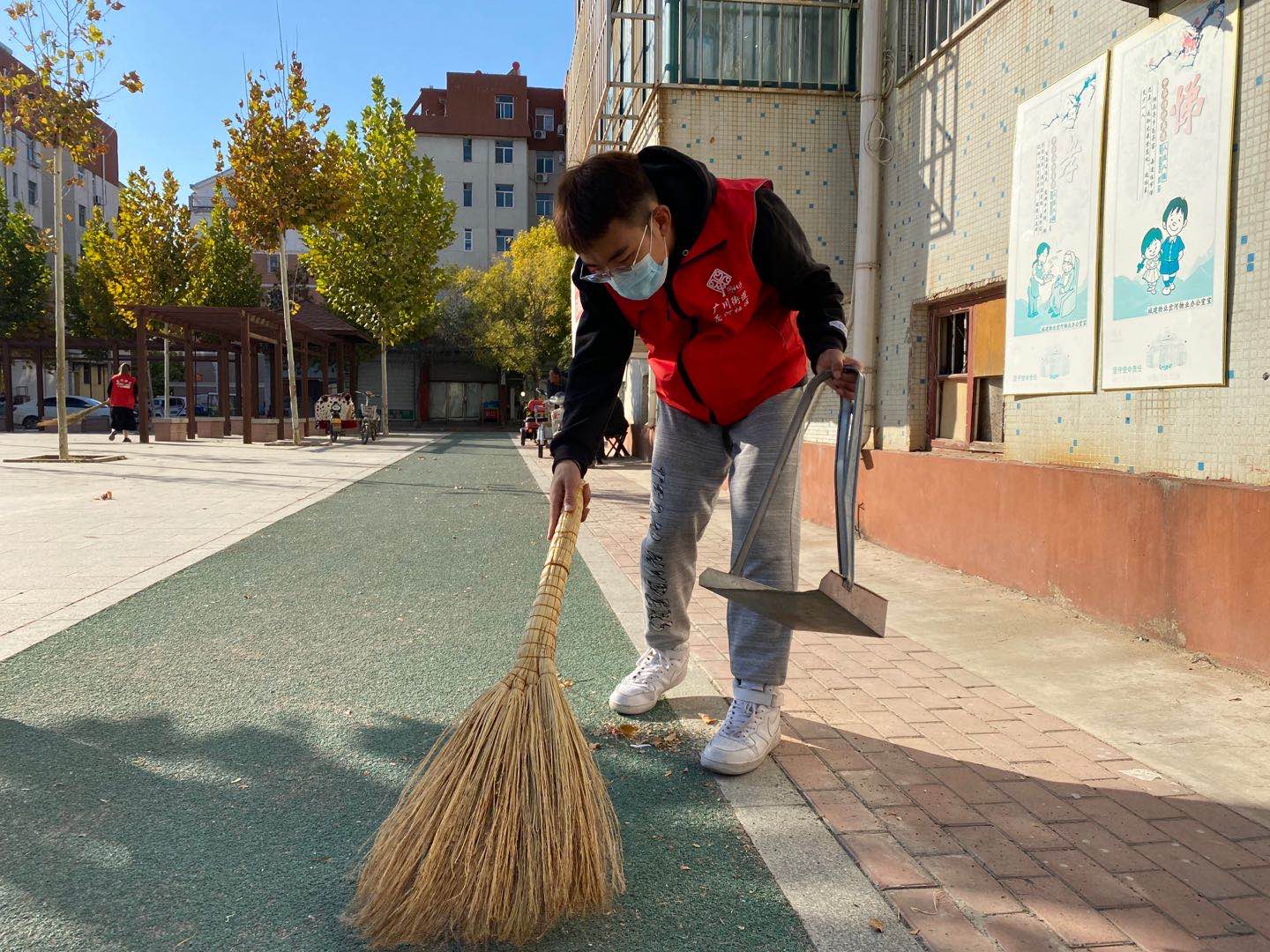 2020年10月23日,bv1946伟德2018级行政管理专业本科班同学在班长郭玉敏的带领下,到岔河居民小区开展了社区志愿者活动。同学们身着红色志愿者服,提着水桶、扛起铁锨、拿起了扫把,在楼前楼后、楼道内外、小广场、水池边等清理小广告、扫除垃圾,为社区居民环境卫生出实力、做实事。