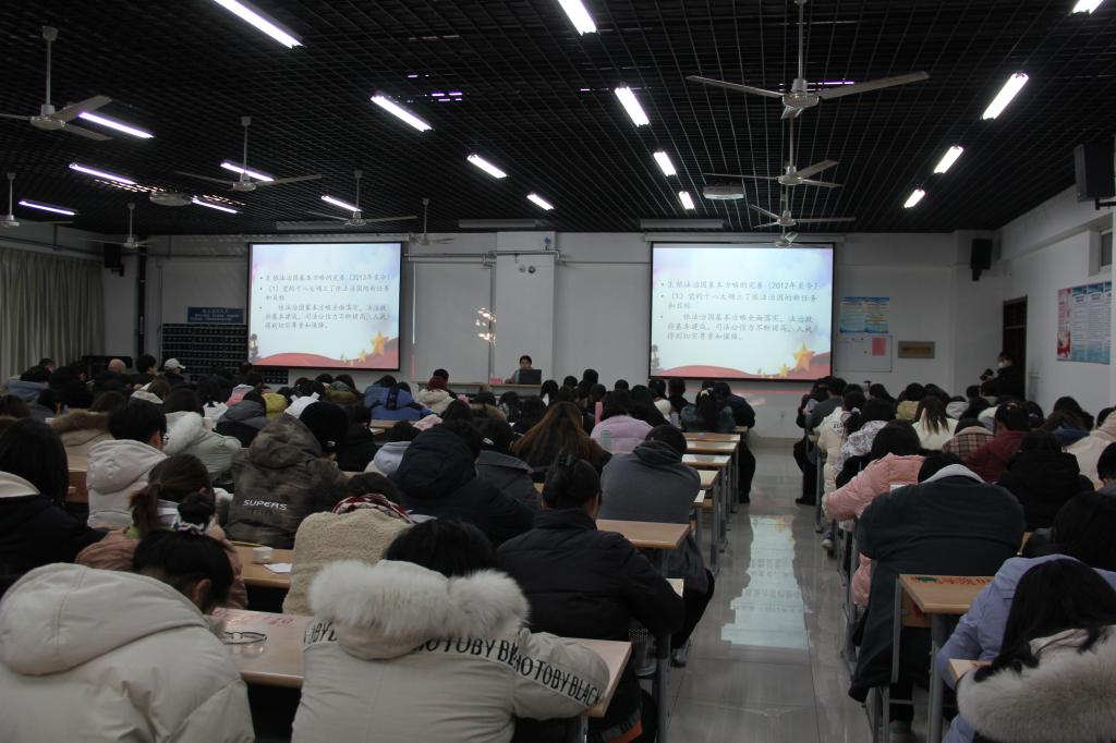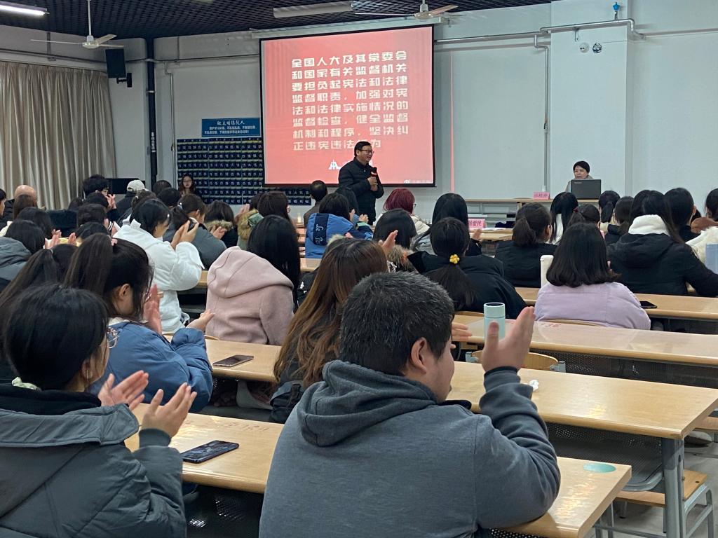 孙桂燕副教授的宣讲报告通过向师生宣讲我国宪法发展和完善的光辉历程,突出学习贯彻习近平法治思想主题,分析依宪治国与依法治国的关系、贯彻实施宪法与建设社会主义法治国家的关系等,重点阐述宪法对于依法治国,建设社会主义法治国家的重要价值与意义。报告接地气、有温度、语言鲜活,讲准、讲透、讲活宪法,既有理论高度,又有思想深度,使与会师生深化了对于宪法价值的认知和对宪法精神的领悟。