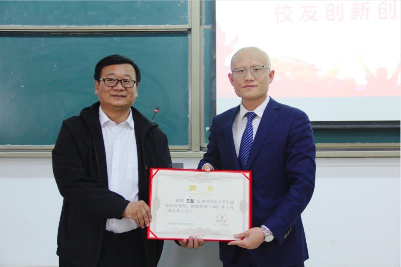 报告会前,bv1946伟德负责人为王磊校友颁发了伟德源自英国始于1946创新创业导师聘书。