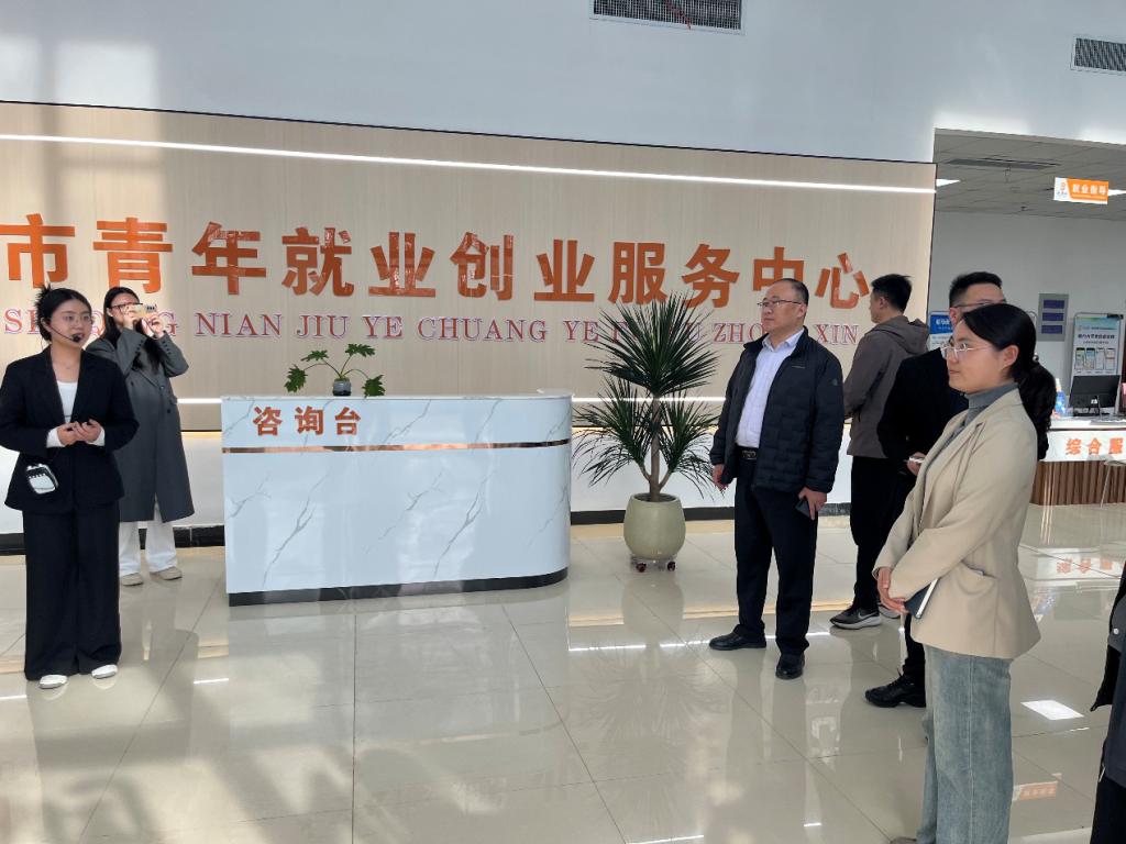 调研中,薛松主任陪同调研组实地参观中心,详细介绍整体运营情况、服务功能布局及高校毕业生就业创业扶持政策;王书欢董事长结合入驻运营实际,讲解中心服务模式、岗位开发与对接机制。调研组边走边问,全面了解中心岗位需求收集、就业指导、创业孵化等工作开展情况,重点关注共享法务中心的建设运营、服务内容及人才需求。