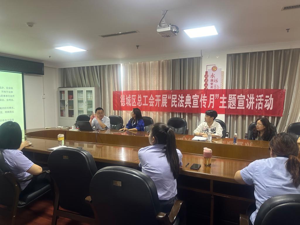 5月24日下午,应德城区总工会邀请,杨振生到山东格瑞德集团有限公司开展“民法典宣传月”主题宣讲活动。德城区总工会法律部有关人员、格瑞德集团法务部全体人员、管理层和职工代表参加活动。