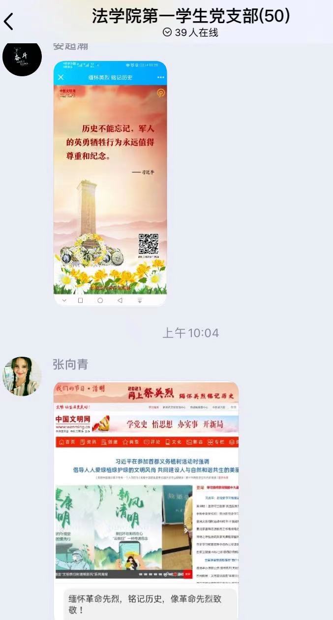 在中国共产党成立100周年纪念日即将来临之际,bv1946伟德第一学生党支部积极组织支部全体党员通过线上、线下开展多种形式的“学党史祭英烈”清明节主题党日活动。