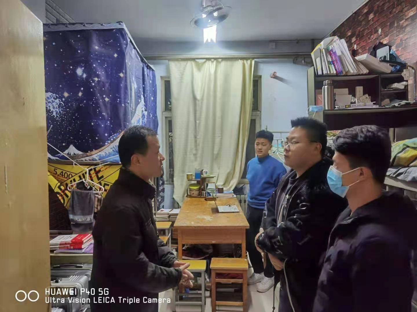 2021年3月1日,bv1946伟德第二教师党支部书记陈伟到八号公寓学生宿舍进行走访,陈伟深入各个宿舍询问学生的到校情况,了解部分同学未到校的原因。